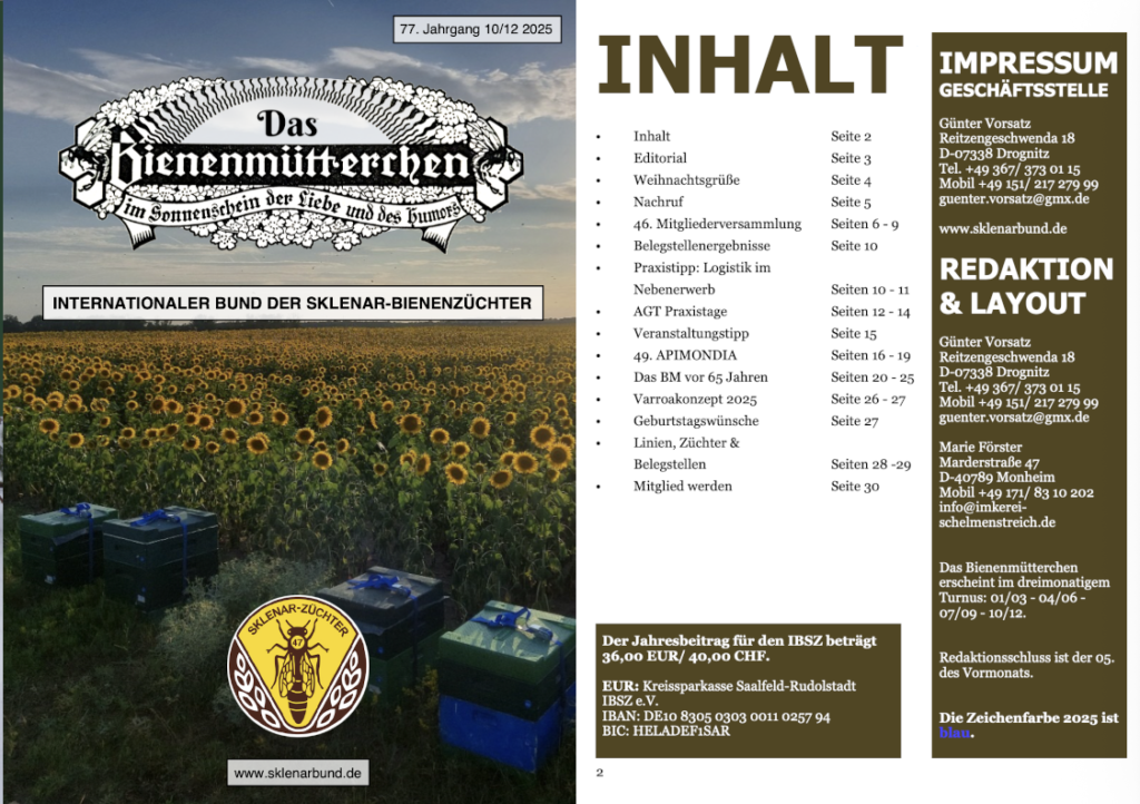 Das Bienenmütterchen ist für Mitglieder des IBSZ e.V. kostenlos. Der Mitgliedsbeitrag beträgt 36,00 EUR/ 40,00 CHF jährlich. Mitglied werden.