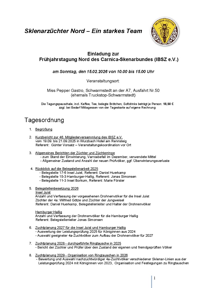 Alle Mitglieder aber auch alle zuchtinteressierten Imker sind herzlich eingeladen.